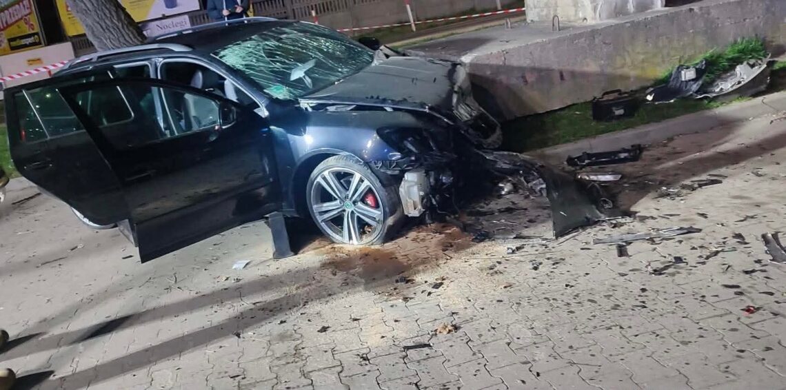 Nietrzeźwy kierowca z zakazem prowadzenia uderzył w mur. Auto było kradzione