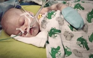 Antoś w 7. dobie życia przeszedł pierwszą operację. Powiedziano nam, że bez niej Antoś umrze. Nie da się opisać słowami, co czują rodzice, którzy patrzą na swoje kilkudniowe dziecko z myślą, że to mogę być jego ostatnie chwile. Niestety, operacja nie powiodła się ze względu na stan zdrowia synka. Lekarze mogli tylko założyć bandingi na tętnice płucne, a mimo tego i tak doszło do komplikacji. Antoś jednej doby był otwierany 3 razy i doszło do krwotoku. Synek leżał zaintubowany prawie 2 tygodnie i walczył o każdą minutę, każdą godzinę, każdy dzień.