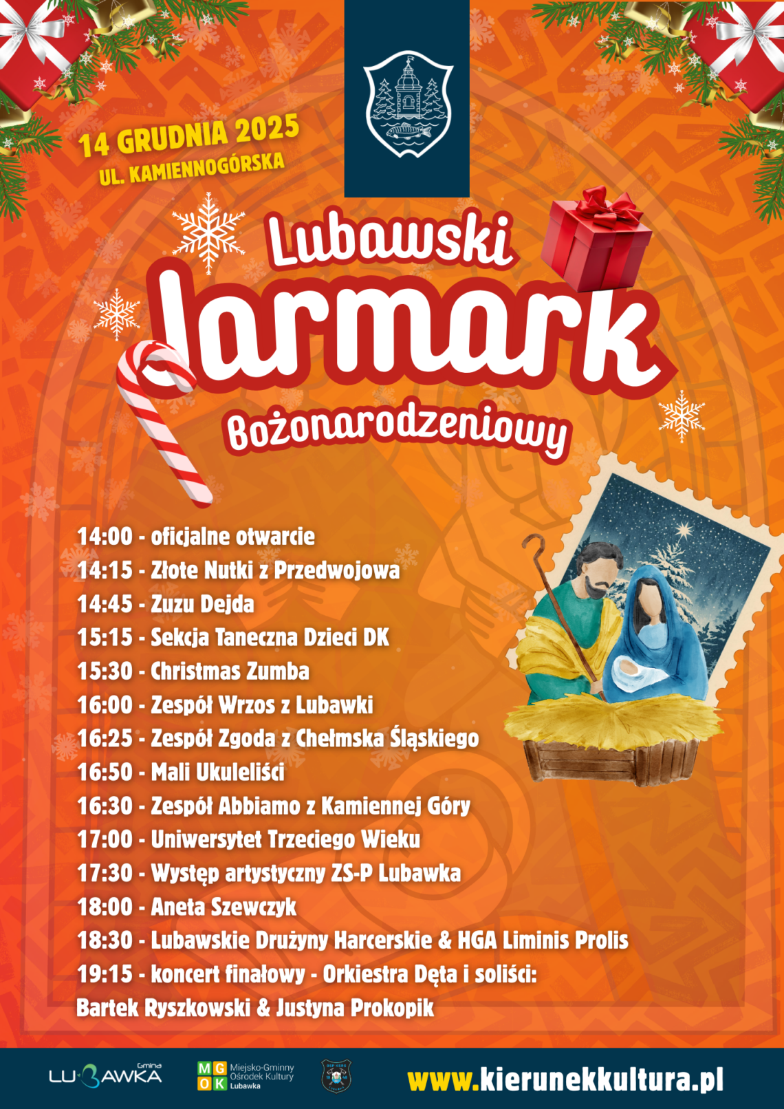 LUBAWKA. Już w najbliższą niedzielę, 14 grudnia, na ul. Kamiennogórskiej odbędzie się Lubawski Jarmark Bożonarodzeniowy. Wydarzenie rozpocznie się o godzinie 14:00 i potrwa do godzin wieczornych.