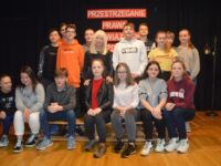 Sędzia Anna Maria Wesołowska spotkała się w auli szkolnej z uczniami klas 6, 7 i 8. Prawniczka uczuliła młodzież o zagrożeniach i przestępstwach, jakie czyhają na młodych ludzi oraz jakie są ich konsekwencje. Uczniowie chętnie zadawali pytania. Po południu odbyło się drugie spotkanie z sędzią, na które zostali zaproszeni nauczyciele, przedstawiciele samorządu i kuratorium oświaty.