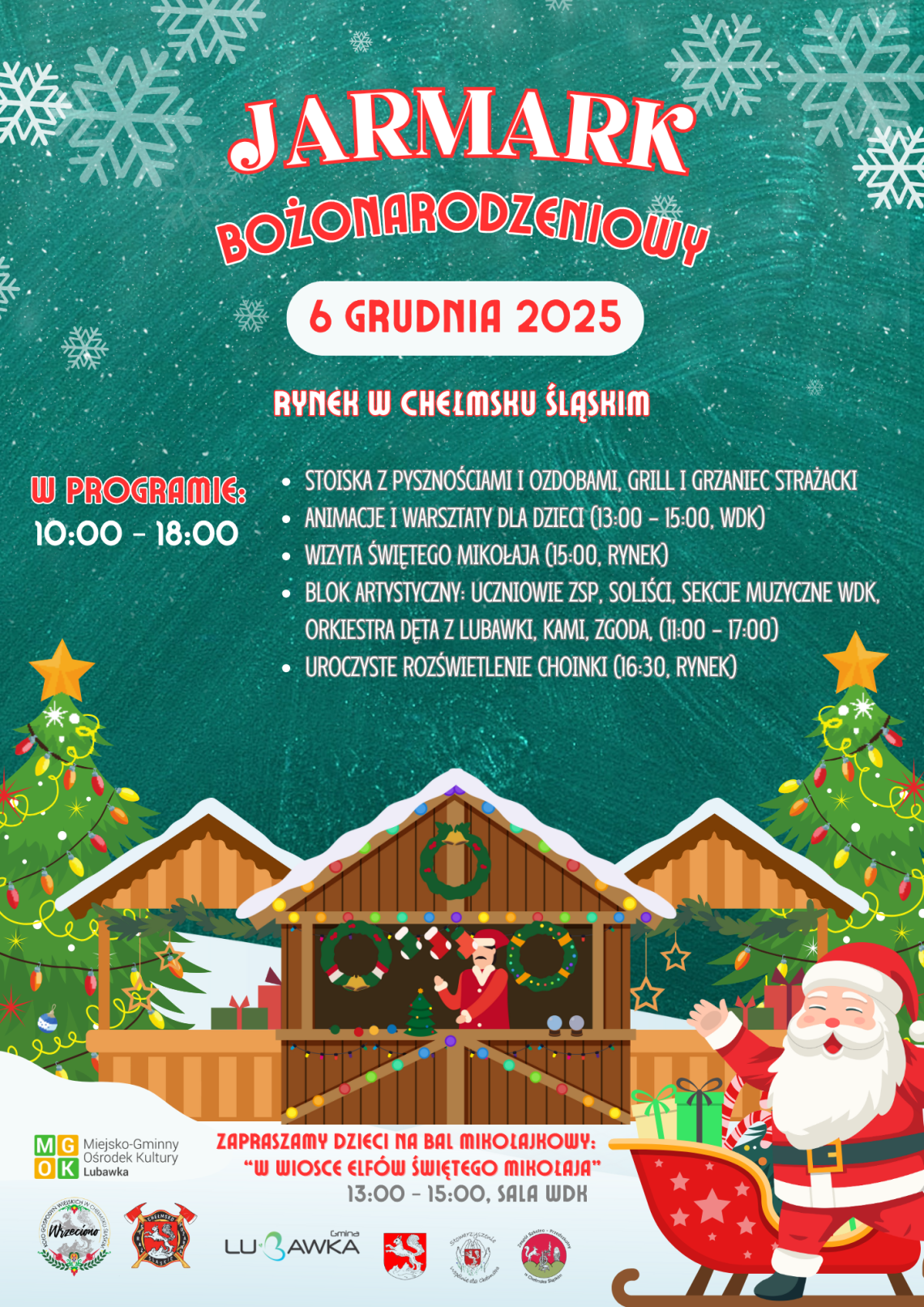 CHEŁMSKO ŚLĄSKIE. W sobotę, 6 grudnia, na rynku w Chełmsku Śląskim odbędzie się Jarmark Bożonarodzeniowy – wydarzenie pełne świątecznej atmosfery, lokalnych smaków i artystycznych emocji. Organizatorzy zapraszają w godzinach od 10:00 do 18:00. W programie jarmarku przewidziano: • stoiska z lokalnymi wyrobami, rękodziełem i tradycyjnymi smakołykami,• animacje i warsztaty dla dzieci w godzinach 13:00–15:00,• spotkanie z Mikołajem o godzinie 15:00,• blok…