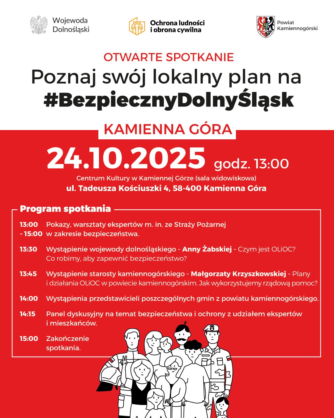 POWIAT KAMIENNOGÓRSKI/DOLNY ŚLĄSK. Wojewoda Dolnośląska Anna Żabska oraz Starosta Kamiennogórski Małgorzata Krzyszkowska zapraszają mieszkańców na otwarte spotkanie poświęcone ochronie ludności i obronie cywilnej – w ramach inicjatywy #BezpiecznyDolnyŚląsk. Spotkanie odbędzie się dnia 24 października o godzinie 13.00 w Centrum Kultury w Kamiennej Górze. To doskonała okazja, by dowiedzieć się, jak wygląda plan zapewnienia bezpieczeństwa w naszym regionie, poznać lokalnych ekspertów…