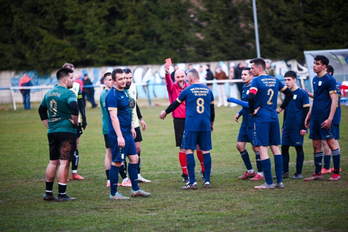 Murowanym faworytem sobotniej potyczki w Chełmsku Śląskim była dużo wyżej klasyfikowana Olimpia, jednak podopieczni Arkadiusza Skrzypczaka z Włókniarza udowodnili, że nie będę w tym sezonie tylko dostarczycielami punktów. Zespół gra szybką i pomysłową piłkę. Bramki dla gospodarzy zdobył Stanisławski, natomiast dla przyjezdnych Bródka i Kuboszek po strzale samobójczym. Czerwoną kartkę zobaczył Bulkiewicz.