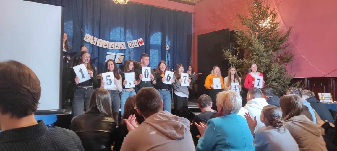 KAMIENNA GÓRA. Finał akcji „Książka od serca” w auli kamiennogórskiego LO. Podczas charytatywnego kiermaszu książek, który odbywał się 9-10 grudnia, wolontariuszom i wspierającym ich nauczycielom udało się zebrać 15 067,47 zł!