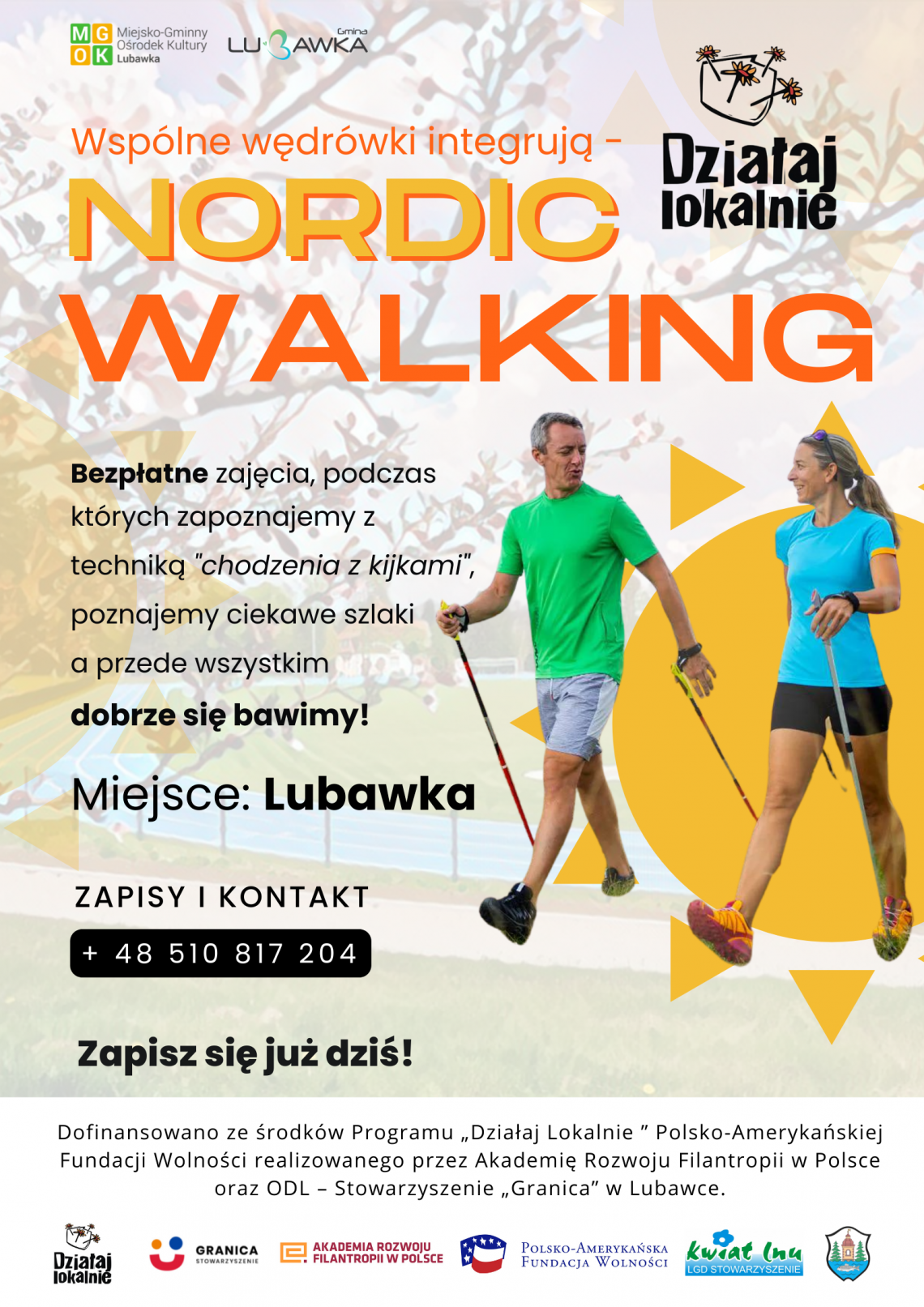 LUBAWKA. We wtorek 26 lipca o godz. 18:00 na stadionie miejskim odbędą się zajęcia nordic walking pt. „Wspólne wędrówki integrują”. Zajęcia są bezpłatne.