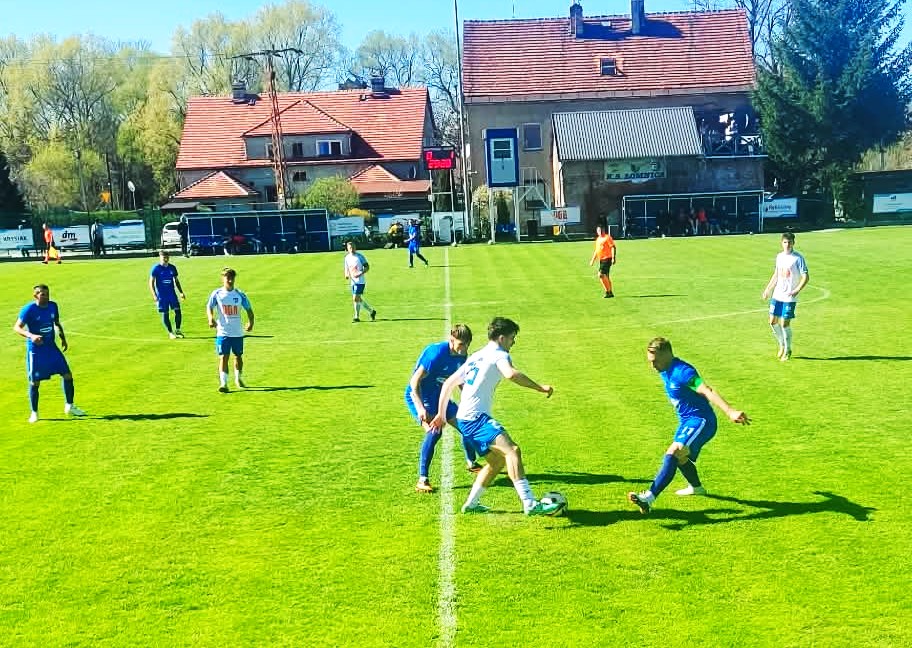 Młodzież z Łomnicy dzielnie broniła się do 23. minuty, kiedy doświadczony Szewczyk trafił na 0:1. Przyjezdni jeszcze przed przerwą dorzucili dwa kolejne gole. Ich autorami zostali Stompór w 37. minucie oraz Sierpina do szatni. W 53. minucie lider podwyższył wynik na 4:0 za sprawą Sierpiny. Gospodarze zmniejszyli rozmiary porażki po 120 sekundach. Fościaka pokonał rezerwowy Dennis Yaw Fumador. W 70. minucie sposób na Jaracza i rozmontowanie bloku defensywnego znalazł Spychaj. Ekipa z Raciborowic (62 pkt) powiększyła przewagę w lidze do 10 „oczek” nad drugim Apisem Jędrzychowice. Łomnica spadła na 3. miejsce z 51 pkt, natomiast kamiennogórska Olimpia plasuje się na 6. pozycji z 39 „oczkami” w stawce 16 drużyn.