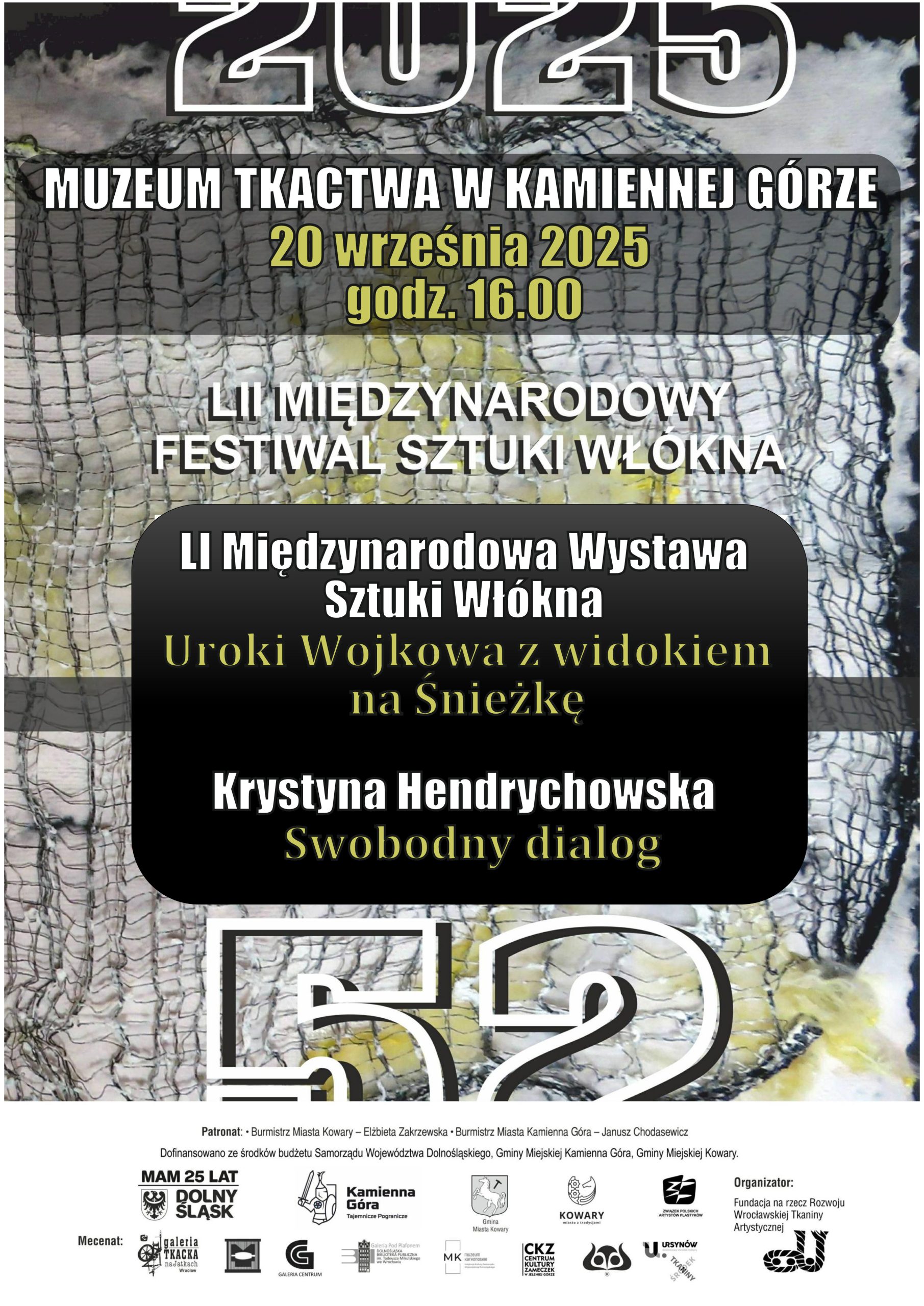 KAMIENNA GÓRA. Muzeum Tkactwa w Kamiennej Górze zaprasza na otwarcie wystaw LII Międzynarodowego Festiwalu Sztuki Włókna 2025.