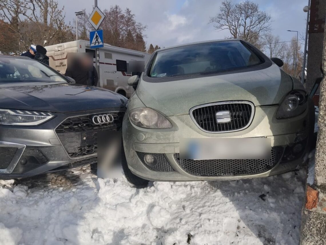 Aby uniknąć najechania na poprzedzający pojazd, mężczyzna gwałtownie zjechał z jezdni, przejechał przez chodnik, najechał na ławkę znajdującą się przy budynku, a następnie uderzył w prawidłowo zaparkowany samochód. Na szczęście w wyniku kolizji nikt nie odniósł obrażeń.