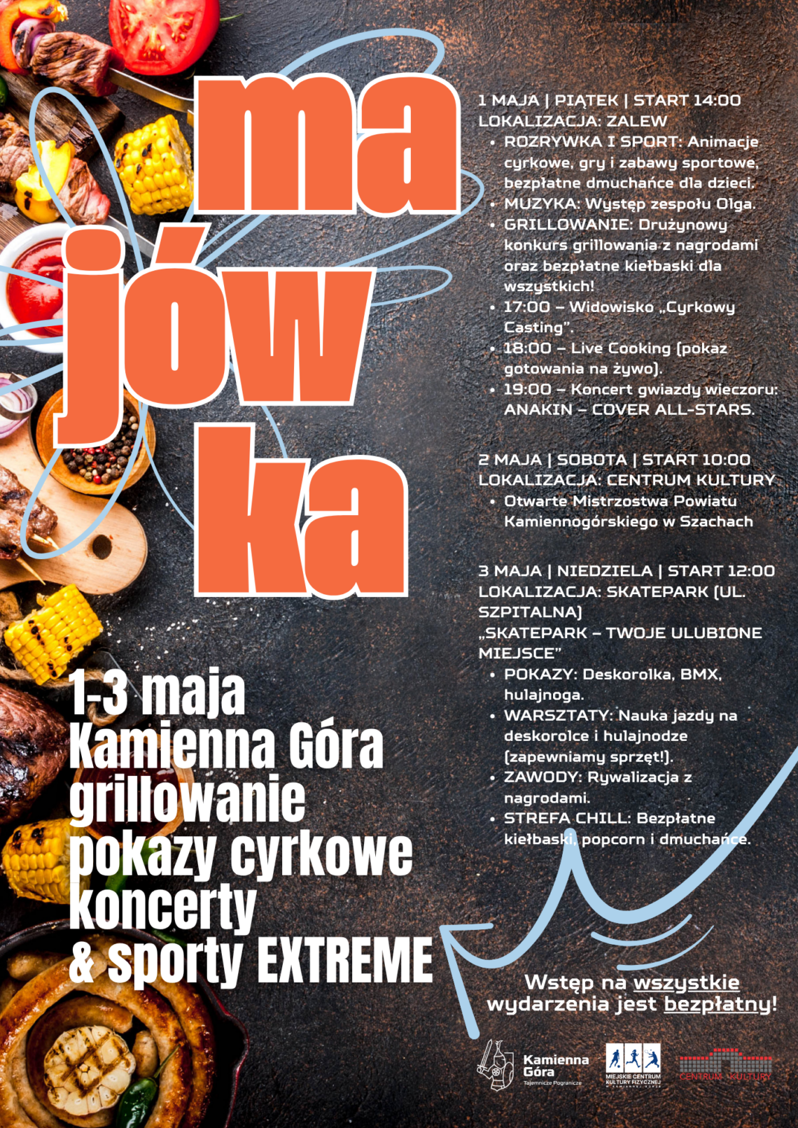 KAMIENNA GÓRA. W dniach 1-3 maja w Kamiennej Górze odbędzie się trzydniowa majówka, podczas której zaplanowano szereg wydarzeń skierowanych zarówno do rodzin z dziećmi, jak i młodzieży oraz dorosłych. W programie znalazły się m.in. koncerty, pokazy cyrkowe, zawody sportowe oraz strefy rekreacyjne. Wstęp na wszystkie wydarzenia jest bezpłatny.