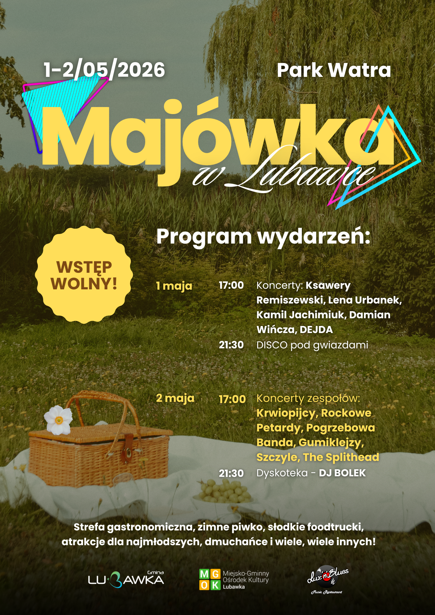 LUBAWKA. 1-2 maja w Parku Watra odbędzie się wydarzenie plenerowe „Majówka w Lubawce”. Wstęp na wydarzenie jest bezpłatny.