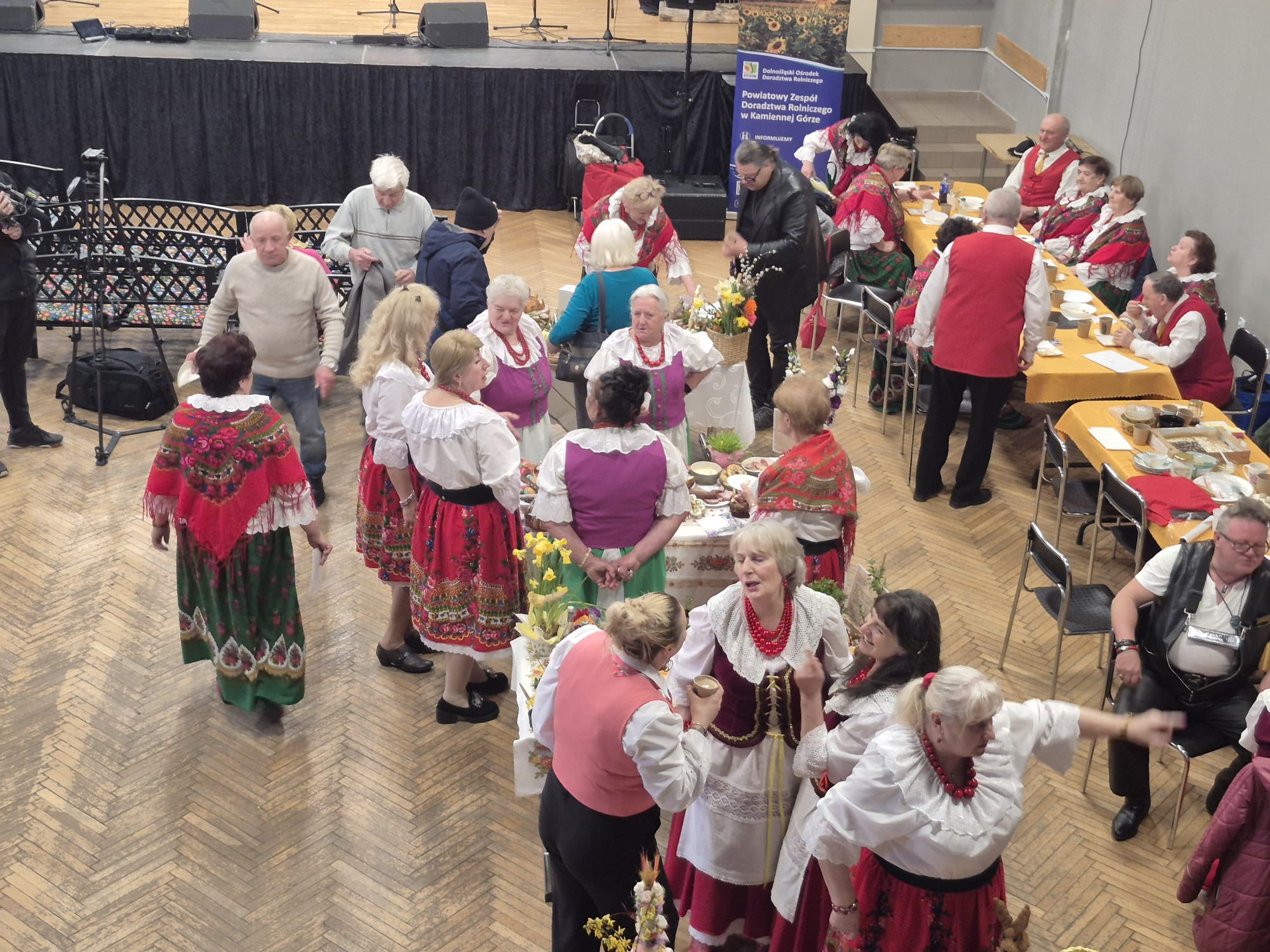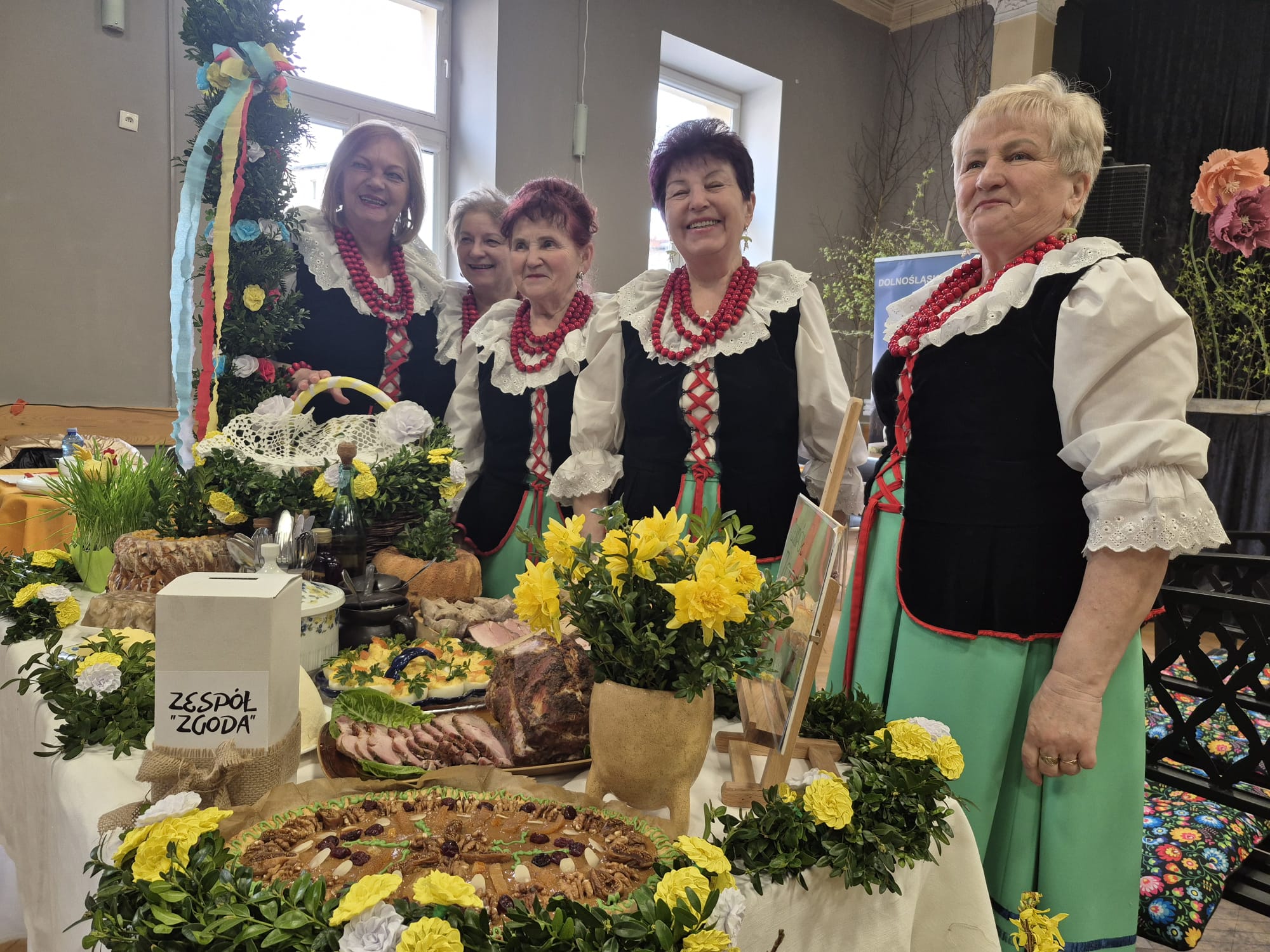 Na stołach pojawiają się m.in. żury, białe kiełbasy, mazurki czy baby wielkanocne, a całość uzupełniają regionalne dekoracje i elementy obrzędowe.