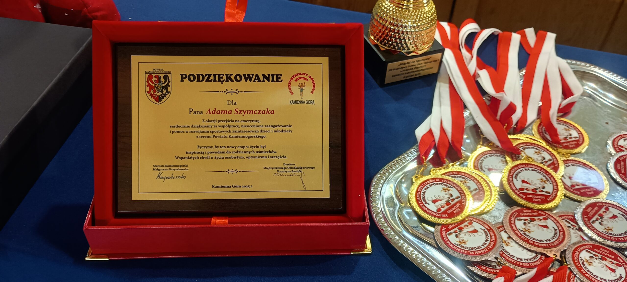 W trakcie wydarzenia starosta wręczyła także szczególne podziękowania dla Adama Szymczaka – dotychczasowego wiceprzewodniczącego Szkolnego Związku Sportowego Dolny Śląsk Wrocław, od lat współpracującego ze sportowymi środowiskami regionu. Wyróżnienie było wyrazem uznania zarówno za jego przejście na emeryturę, jak i za wieloletnią, pełną pasji pracę na rzecz lokalnego sportu młodzieżowego.