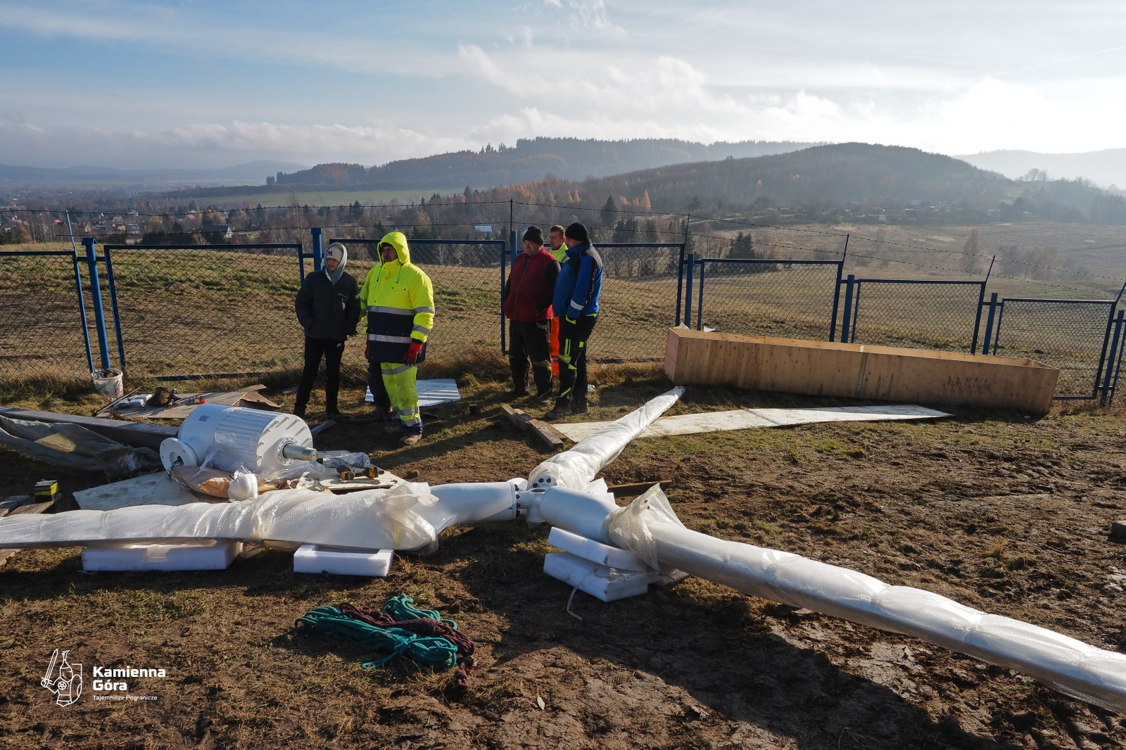 KAMIENNA GÓRA. Miejskie Przedsiębiorstwo Wodociągów i Kanalizacji w Kamiennej Górze realizuje kolejną inwestycję proekologiczną. We wtorek, 12 listopada, na wzgórzu Szubianka rozpoczął się montaż trzech turbin wiatrowych o łącznej mocy 50 kW. Koszt przedsięwzięcia to ponad pół miliona złotych.