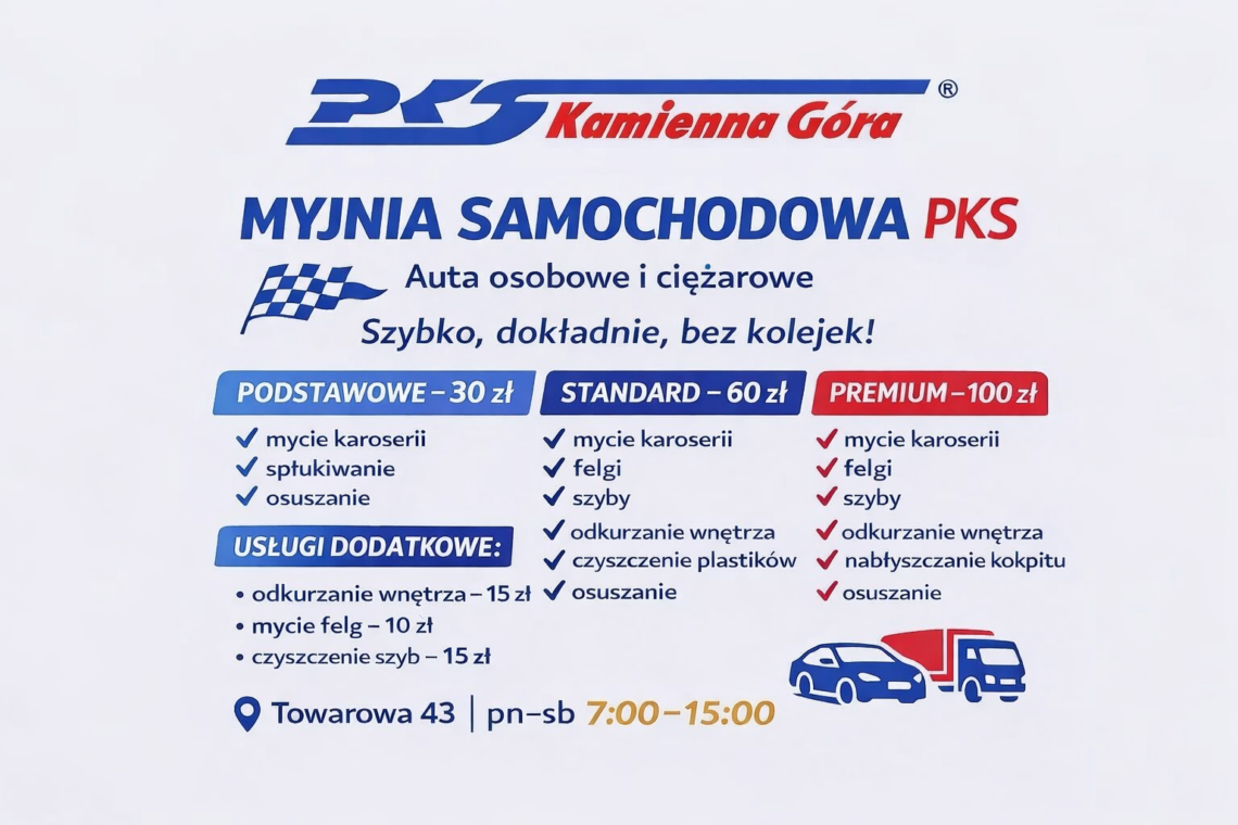 Myjnia samochodowa PKS Kamienna Góra zaprasza!