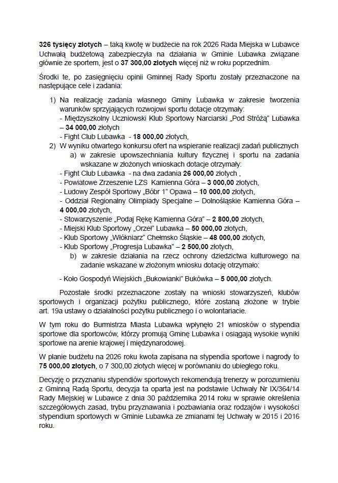 Oświadczenie tej treści pomieszczono na Facebooku UM Lubawka: