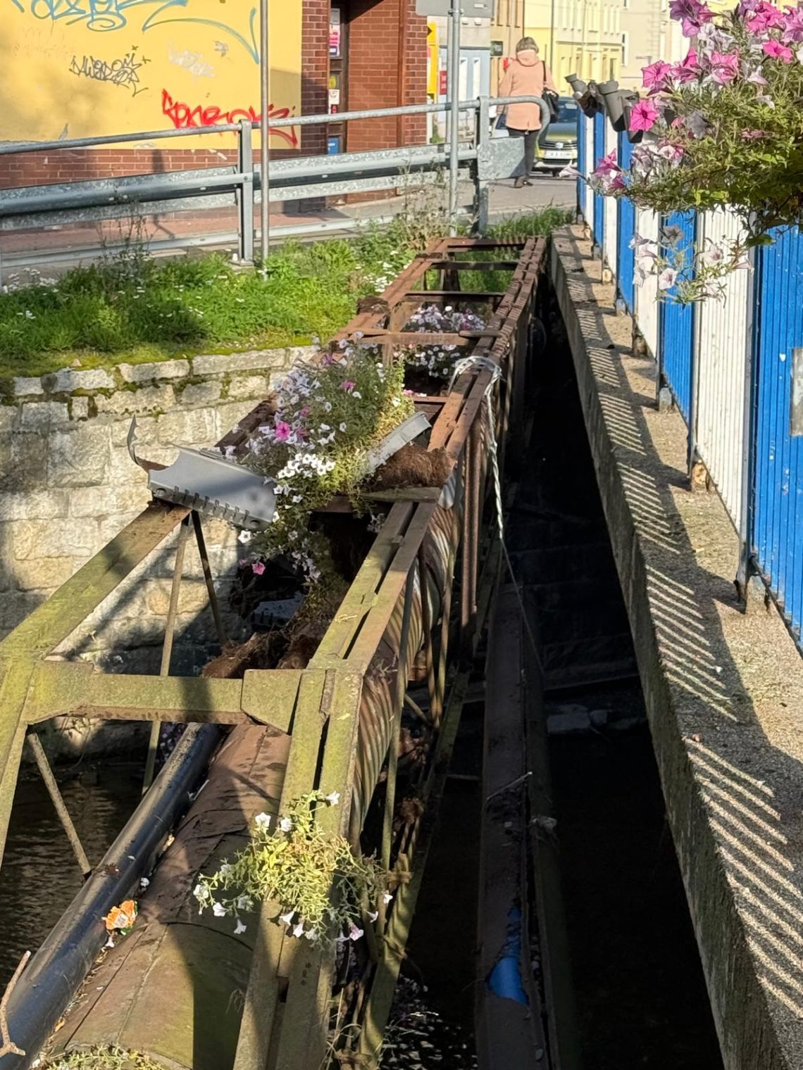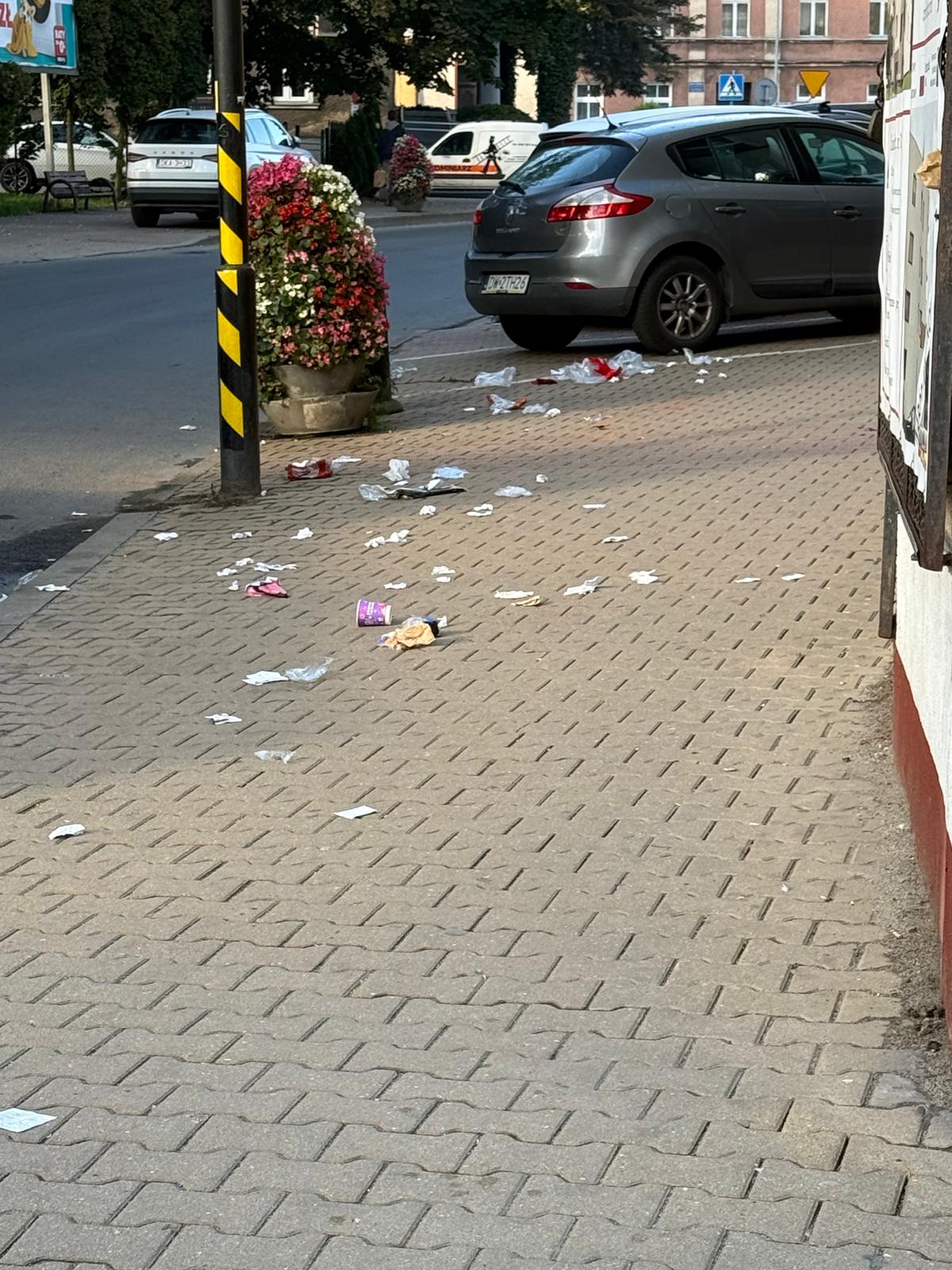 KAMIENNA GÓRA. W piątek, 26 września późnym wieczorem i w nocy, ulica Broniewskiego w Kamiennej Górze zamieniła się w pobojowisko. Efekty „zabawy” wandali można oglądać w sobotę rano – porozwalane kosze na śmieci, ulica zasypana odpadami, a do tego zniszczone i powrzucane do rzeki kwiaty razem donicami – to na moście przy PJP II.