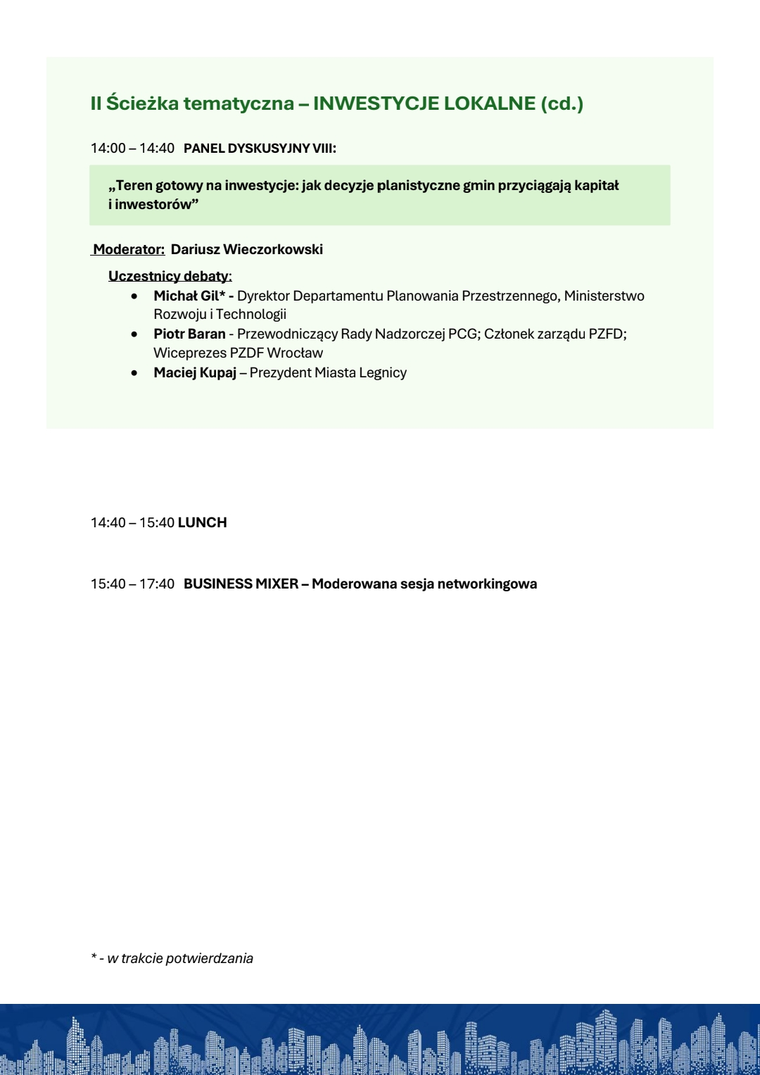 Wydarzenie to, realizowane pod patronatem Ministerstwa Rozwoju i Technologii, planowane jest jako ogólnopolskie forum inwestycyjne z udziałem przedstawicieli administracji publicznej, samorządowej, biznesu, instytucji finansowych oraz uznanych ekspertów.