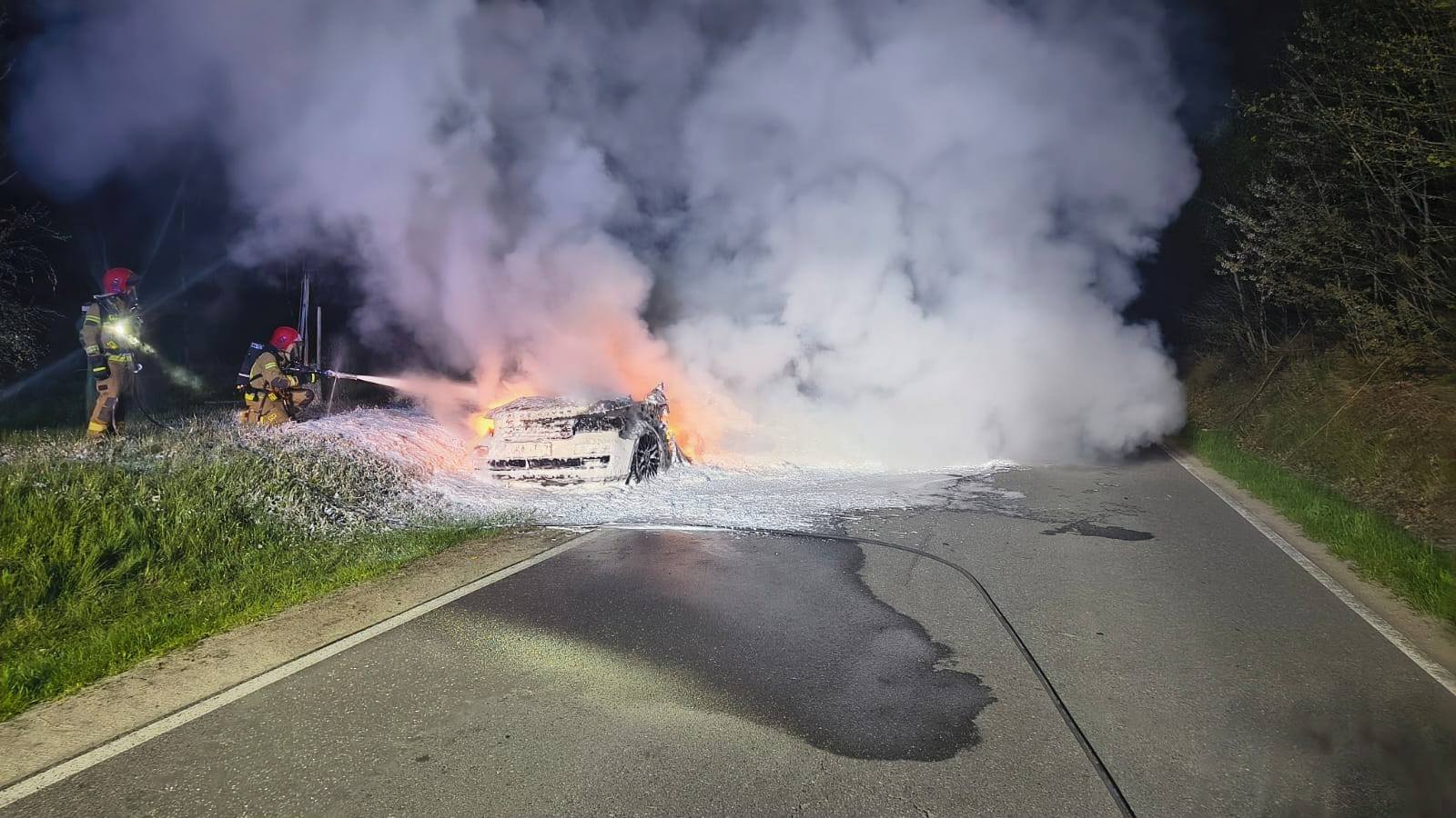 JANISZÓW. We wtorek, po godzinie 21:30 we wsi doszło do pożaru samochodu osobowego. Zdarzenie miało miejsce na drodze prowadzącej z Kamienna Góra w kierunku Bukówka.