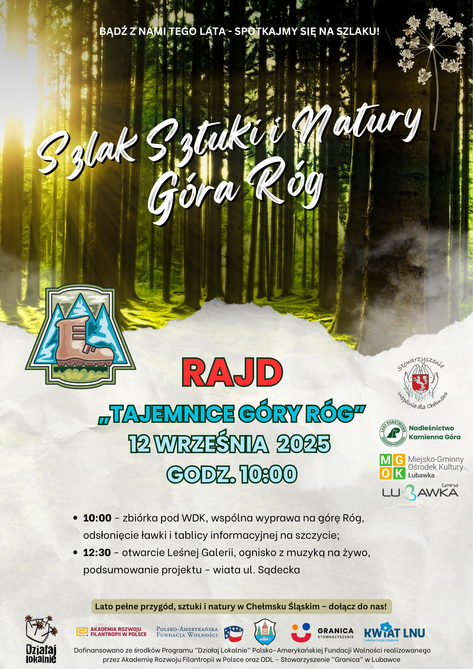CHEŁMSKO ŚL. W piątek, 12 września, odbędzie się uroczyste podsumowanie projektu pn. „Szlak Sztuki i Natury – Góra Róg”, realizowanego przez grupę nieformalną Róg Kultury działającą przy WDK w ramach Stowarzyszenia „Wspólnie dla Chełmska”.