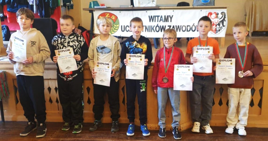 W najmłodszej kategorii orliczek całe podium zdominowały zawodniczki ze SP nr 1 z Kamiennej Góry, które zajęły całe podium. Medale wywalczyły Ewa Powroźnik, Maja Mazur i Oliwia Lis. Wśród chłopców było jeszcze lepiej. Wszystkie 4. miejsca, dające awans do finału DŚ zajęli sportowcy z „jedynki”. Na podium stanęli: Nikodem Haramus, Dominik Wielosik i Leon Prokopik. Czwarty był Szymon Rymer (na zdjęciu). Kategorię młodziczek wygrała Wiktoria Żegota z Jeżowa Sudeckiego, wyprzedzając Zosię Maszczak z „jedynki” i Maję Dzieciątkowską z Jeżowa Sudeckiego. Na czwartej pozycji finiszowała Łucja Ciosmak z kamiennogórskiej” „dwójki. Mieszkaniec Siedlęcina Szymon Piwowar został mistrzem strefy w kategorii młodzików. Za jego plecami znaleźli się Karol Łuczak i Mateusz Kaczmarczyk (obaj z „jedynki”. Hubert Skrzypiec ze SP nr 1 z Kamiennej Góry sklasyfikowany został na 6. miejscu. W juniorkach młodszych równych sobie nie miała Oliwia Ługowska z Siedlęcina. Srebrny medal i awans wywalczyła nasza Justyna Łuczak. Wśród chłopców zwyciężył mieszkaniec Czadrowa – Igor Skoczylas (absolwent „jedynki”, wyprzedzając Roberta Wekłyka z Siedlęcina i Kacpra Kurnytę z kamiennogórskiej „jedynki”. W juniorach wystąpili tylko zawodnicy z Rakowic Wielkich, zajmując całe podium. Medale zawisły na szyjach: Huberta Kubaja, Andreii Severyna i Radika Polietaieva. Kategorię seniorek wygrała kamiennogórzanka Anna Rymer, a czwartą lokatę dającą awans zdobył dodatkowo Anna Lis z Kamiennej Góry. W seniorach całe podium należało do naszych zawodników. Wygrał Mariusz Nowak z Kamiennej Góry, który minimalnie wyprzedził syna ojca i z Krzeszowa – Jakuba Zasadę (piłkarz Olimpii Kamienna Góra) i Wojciecha. Jednego pkt do awansu zabrakło Fabianowi Skoczylasowi z Czadrowa. Sędzią głównym zawodów był kamiennogórzanin – Wiesław Lipień. W podsumowaniu Gmin – Kamienna Góra zdobyła rekordowe 348 pkt, zajmując zdecydowanie 1. lokatę. Drugi Jeżów Sudecki wzbierał 221 „oczek”. Kamienna Góra także wygrała jako powiat (348 pkt). Powiat Karkonoski zgromadził 310. 18 października o godzinie 10:00 po raz trzeci w Krzeszowie odbędzie się finał Dolnego Śląska w warcabach 100-polowych. Redakcja ID liczy na kilka medali dla powiatu.