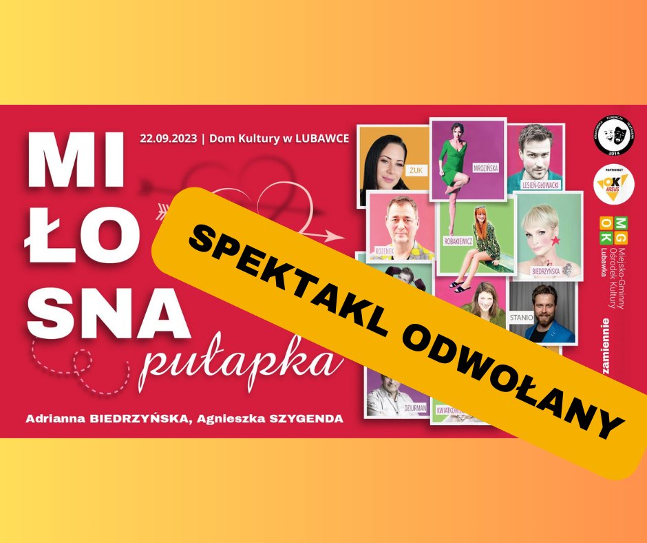 LUBAWKA. Z przyczyn niezależnych od lubawskiego domu kultury, spektakl „Miłosna Pułapka”, którego termin został przeniesiony na 3 listopada, został odwołany.