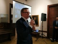Burmistrz Chodasewicz przywitał zgromadzonych w muzeum i pokazał prezentację na temat zmian, jakie zaszły w Kamiennej Górze w ostatnim roku.