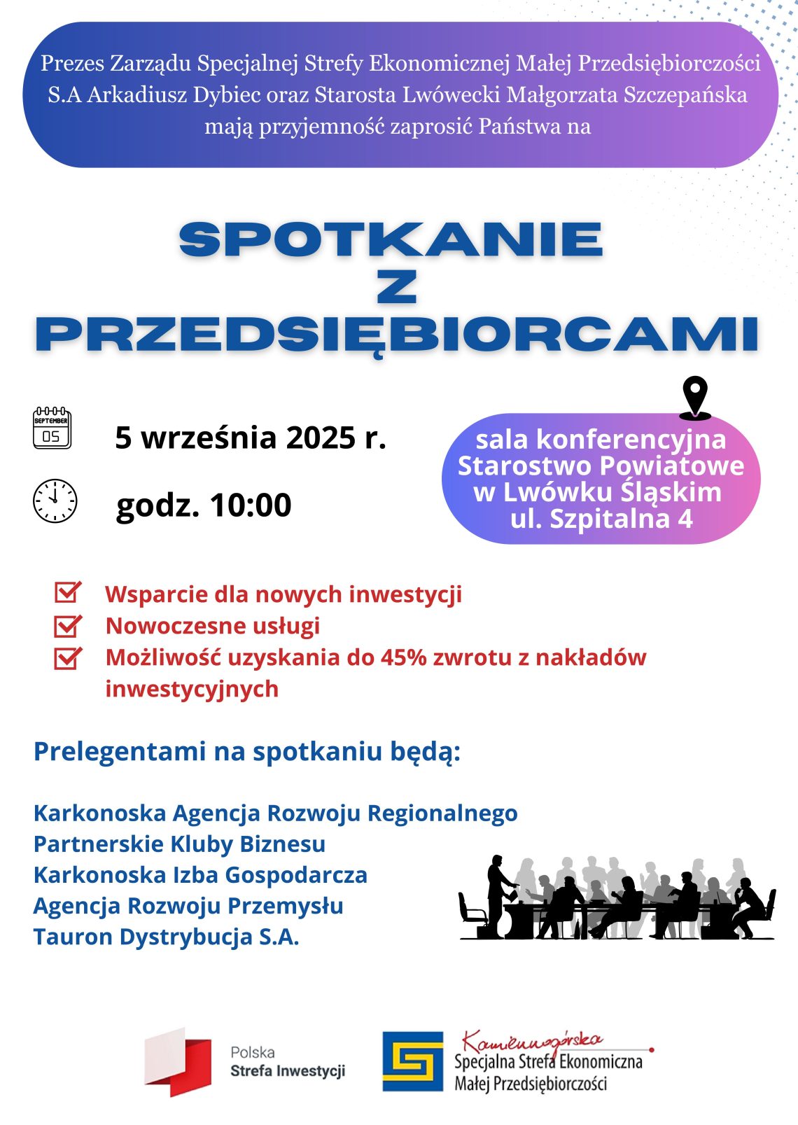 REGION. W piątek 5 września o godzinie 10:00 w sali konferencyjnej Starostwa Powiatowego w Lwówku Śląskim odbędzie się spotkanie skierowane do lokalnych przedsiębiorców.
