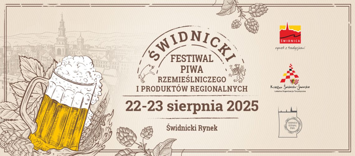 Organizatorzy zapraszają na IX edycję Świdnickiego Festiwalu Piwa Rzemieślniczego i Produktów Regionalnych – wyjątkowego wydarzenia, które na stałe wpisało się w kalendarz lokalnych imprez. Na świdnicki rynek przyjeżdżają fani napojów z pianką oraz produktów, rzemiosła i wyrobów regionalnych nie tylko z Dolnego Śląska. Główną atrakcją wydarzenia są stoiska browarów rzemieślniczych z całej Polski oraz lokalnych winnic. Na stoiskach znajdziecie państwo również wyjątkowe produkty wytwarzane przez rodzinne firmy, gospodarstwa ekologiczne i agroturystyczne, naturalne kosmetyki oraz wędliny – wszystko przygotowane w duchu tradycji. Nie zabraknie również uczty dla miłośników muzyki. Na scenie zaprezentują się m.in.: Żółta Febra, Lunapark i Rogal Salut. Stoiska w dwa dni otwarte będą od godziny 10:00.