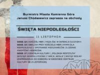 O godz. 17.00 w Centrum Kultury wydarzenie „Polonia Restituta” – występ Zespołu Pieśni i Tańca „Wisła”. Wstęp wolny, ale trzeba wcześniej pójść po zaproszenia do impresariatu impresario Piotra Oskwarka. Można zacząć chodzić już od 2 listopada – podaje miasto na plakacie. Tak, i na tym koniec. My to się w Kamiennej Górze potrafimy cieszyć z niepodległości, jak nikt inny.
