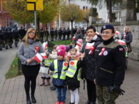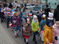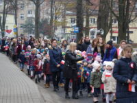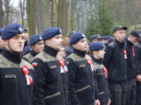 O godz. 11.11 zebrani wspólnie zaśpiewali Mazurka Dąbrowskiego, zostały też złożone kwiaty i znicze pod pomnikiem, a uczniowie ZSZiO przygotowali program artystyczny.
