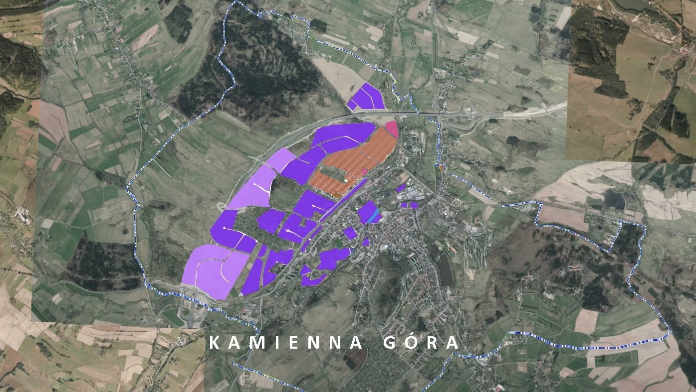 Mapa Kamiennej Góry przedstawia tereny przeznaczone pod produkcję i drobną wytwórczość.