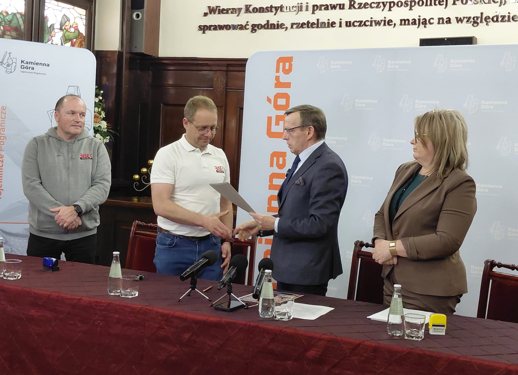 KAMIENNA GÓRA. W poniedziałek, 27 kwietnia, w Sali Witrażowej kamiennogórskiego ratusza podpisana została umowa na przebudowę ul. Henryka Sienkiewicza wraz z przyległą infrastrukturą.