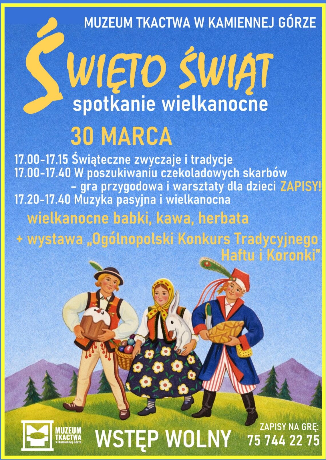 KAMIENNA GÓRA. Muzeum Tkactwa w Kamiennej Górze zaprasza na familijne wydarzenie „Święto Świąt”, które odbędzie się w poniedziałek 30 marca o godz. 17:00. W programie przewidziano zarówno warsztaty i zabawy dla dzieci, jak i wykłady oraz prezentacje dla dorosłych.