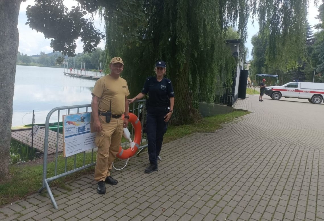 POWIAT KAMIENNOGÓRSKI. W ramach stałej współpracy na rzecz bezpieczeństwa w rejonach zbiorników wodnych, funkcjonariuszka zajmująca się profilaktyką z Komendy Powiatowej Policji w Kamiennej Górze wspólnie ze strażakami patrolowała tereny przywodne na terenie powiatu.