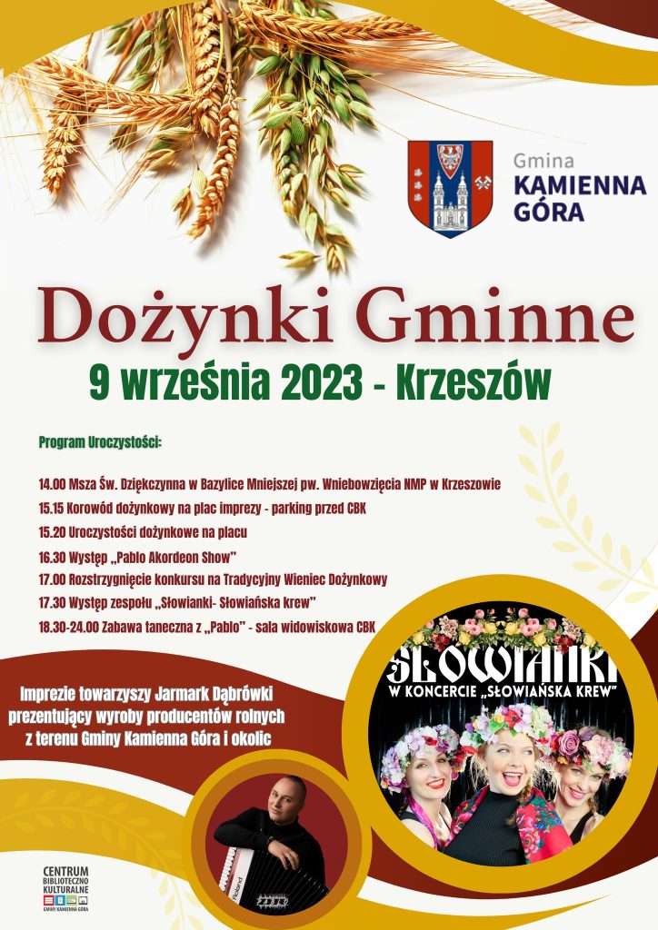 – Na wieczorną zabawę zapraszamy po zakończeniu obchodów dożynkowych do sali widowiskowej CBK w Krzeszowie. Zabawa potrwa do północy, a poprowadzi ją znany lokalnej widowni Pablo – zaprasza gospodarz gminy.