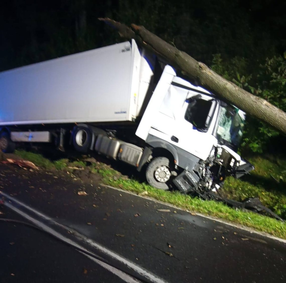 DĘBRZNIK. Przed godziną 5.00 na drodze krajowej nr 5, na odcinku Ptaszków–Dębrznik, doszło do zdarzenia drogowego z udziałem samochodu ciężarowego z naczepą.