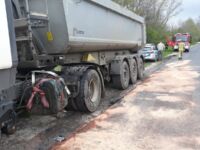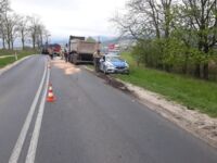 Wskutek zdarzenia, do którego doszło przed godziną 10.00, droga była przez około 30 minut przejezdna tylko jednym pasem, co szybko doprowadziło do utworzenia się korka. Ze wstępnych ustaleń służb wynika, że osobowy opel uderzył w bok ciężarówki. Z pojazdu wylały się płyny eksploatacyjne. Musieli interweniować strażacy i policja. Żadnemu z uczestników zdarzenia nic się nie stało.